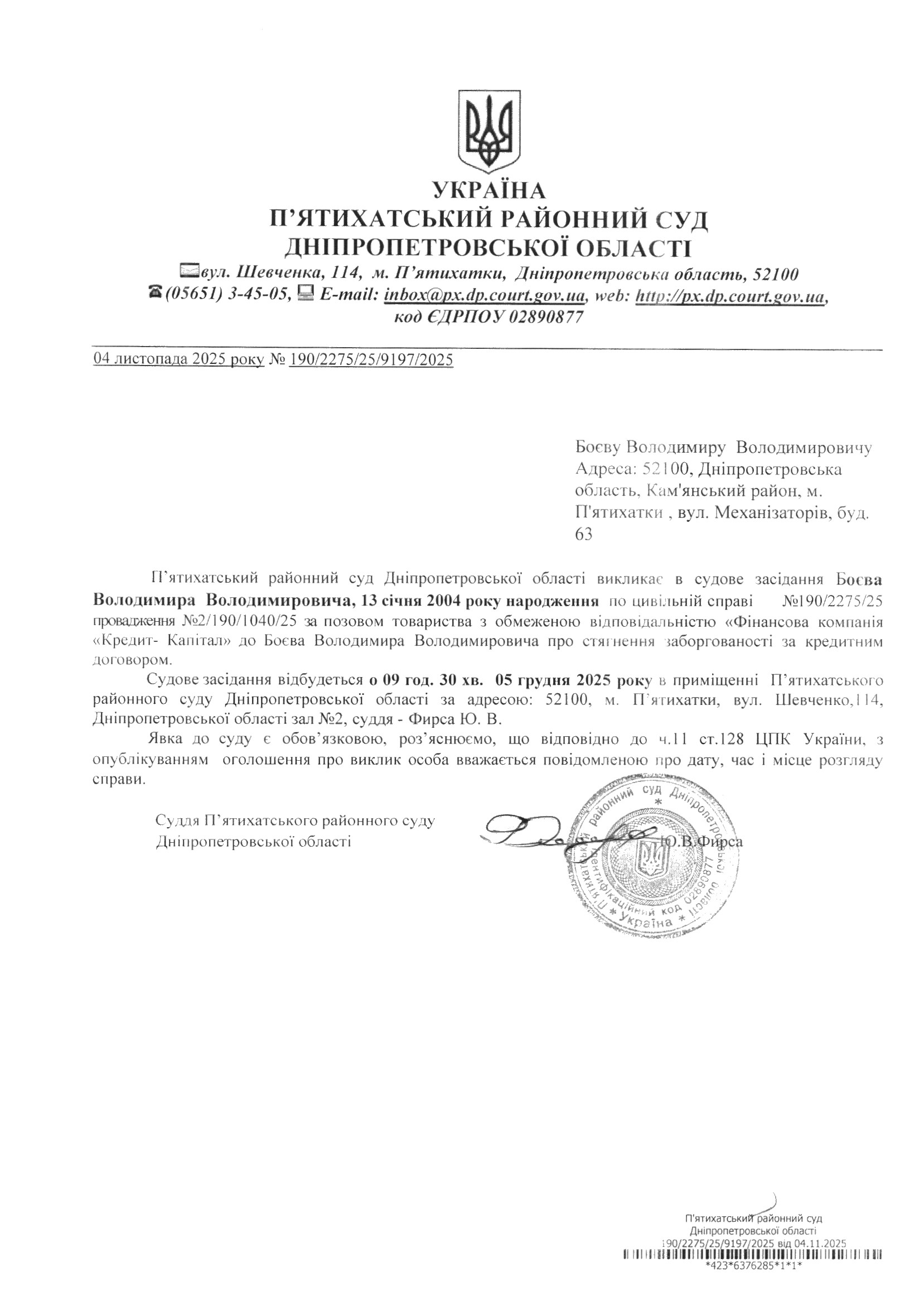 Про виклик в судове засідання Боєв Володимир Володимирович