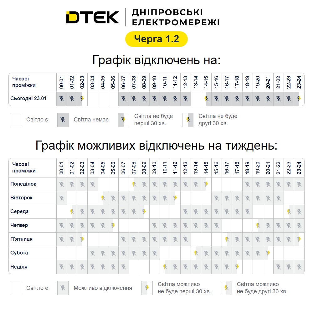 Графік стабілізаційних відключень черга 1.2 на 23.01.2026